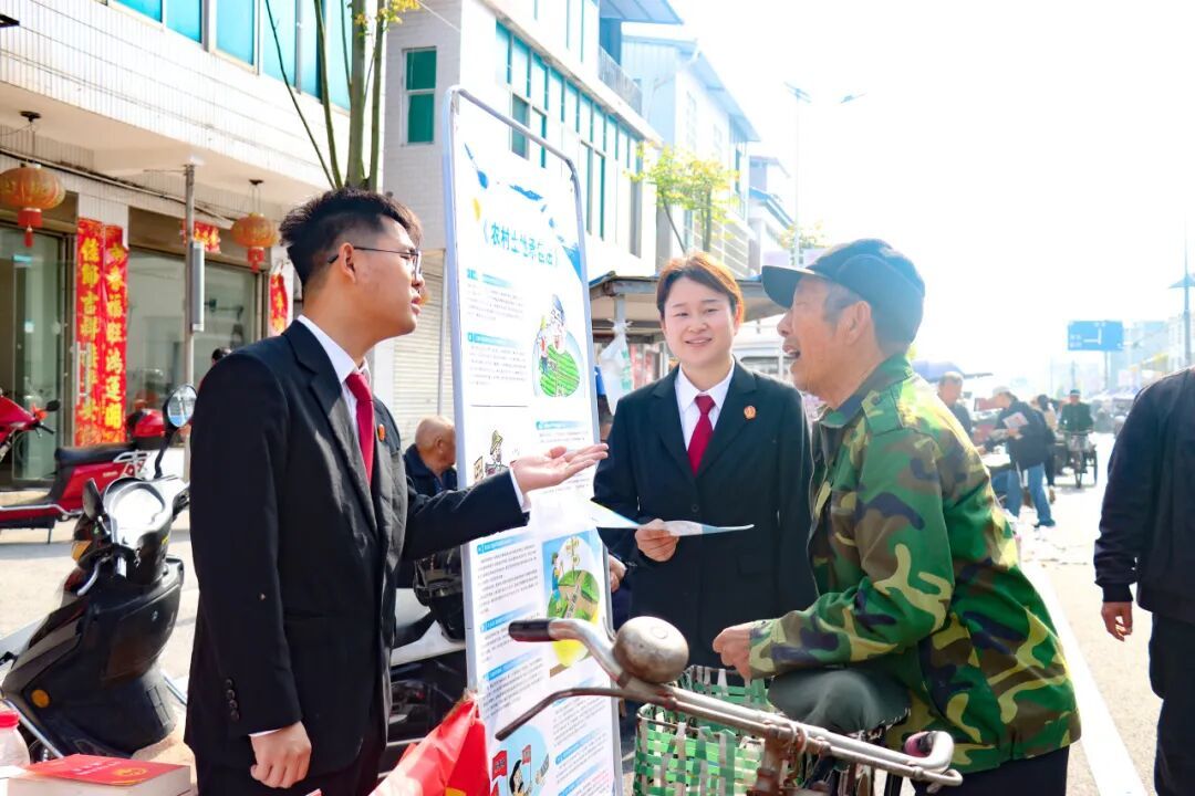 干警经过拉横幅、设置普法展架、发放宣扬手册、现场咨询等方法,用通俗易懂的言语将不流畅的法令条文转化为生动的“大白话”,具体讲解了婚姻家庭、谨防电信欺诈、民间假贷、土地承揽等与大众生活休戚相关的法令知识。